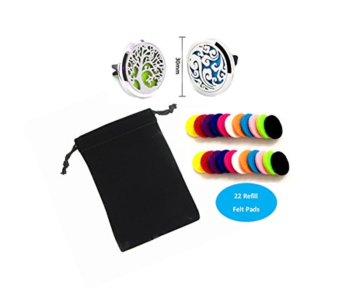 Aromatherapy Car Diffuser for Essential Oil 2 Pcs (30 mm) Stainless steel Cloud and Tree of life Design Vent Clip Bundle With 22 Refill Pads & Carrying Case For Work And Home By Lavish Life
