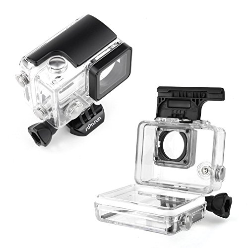 SOONSUN Standard Waterproof Housing Case for GoPro Hero 4 Hero 3+ Hero 3 Hero4 Hero3 with BacPac Waterproof Backdoor and Camera Lens Cap - Underwater 40 Meters