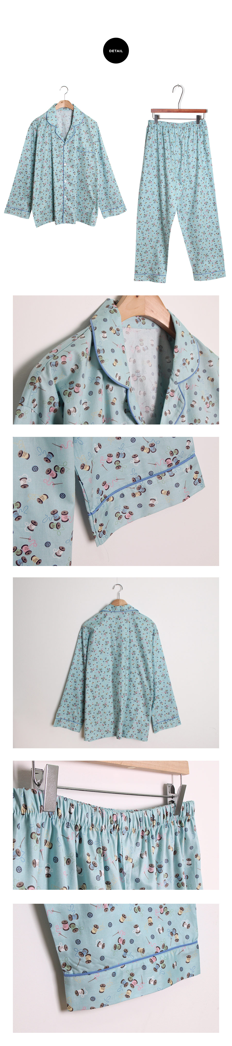 소매 부분과 팬츠의 하단에도 삥줄을 둘러주어 마무리 하였습니다.