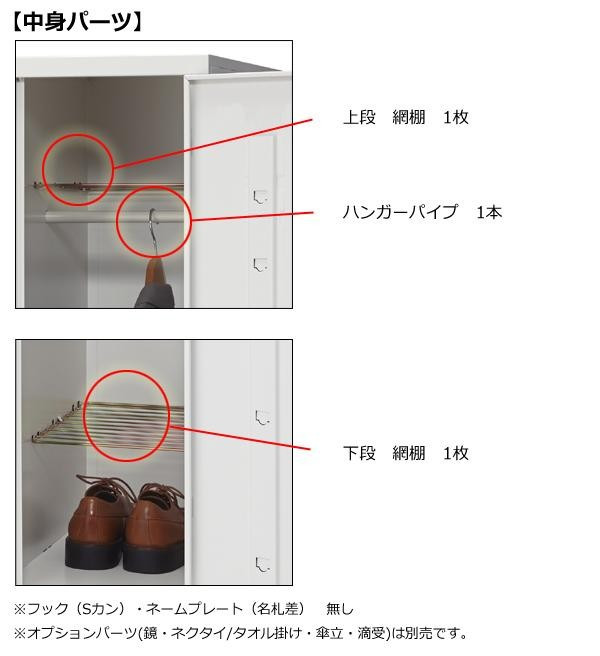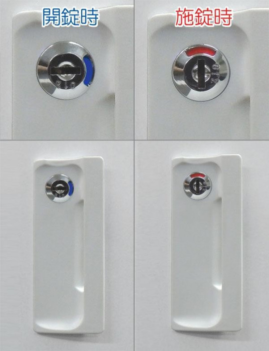 | 素材・材質 | 本体・扉:スチール製、粉体塗装(ホワイト色) 取手・開閉表示付きシリンダー錠:ABS樹脂(ホワイト色) |