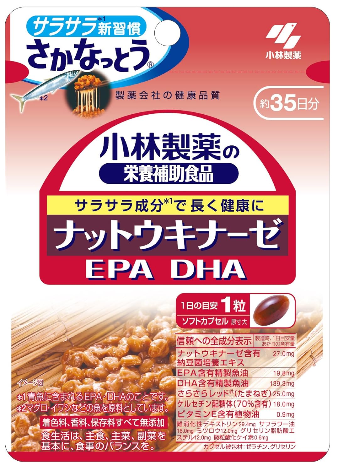 サイズ:35粒商品紹介■ サラサラ成分を摂りたい方にナットウキナーゼを含有する納豆菌培養エキスやDHA、EPAやさらさらレッド(たまねぎ)などを配合しました。脂肪を多くとりがちな方におすすめです。原材料・成分DHA含有精製魚油、ゼラチン、デキストリン、サフラワー油、EPA含有精製魚油、さらさらレッド(たまねぎ)、ナットウキナーゼ含有納豆菌培養エキス、グリセリン、ミツロウ、グリセリン脂肪酸エステル