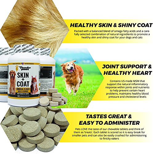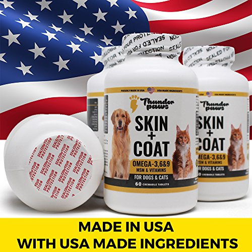 For this very reason, we worked with a team of scientists and doctors to develop Thunderpaws Skin+Coat for Dogs and Cats - A great tasting, high quality and nutritionally superior supplement for your dog and cat to support healthy skin, maintain a luxurious coat and minimize shedding.