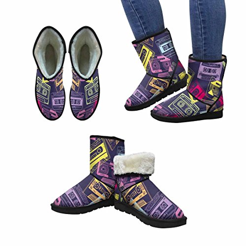 (InterestPrint)/Women's/Boots/DIRECT FROM USA/InterestPrint Women's Snow Boots Hipster Cartoon Pattern With colorful Retro Cassettes Music Th...
