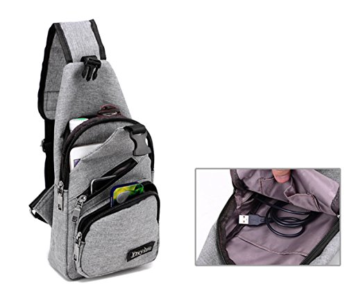 -. Title : Usb Crossbody Chest Bag Canvas Messenger Bag Travel Chest Pack Sling Men Bags