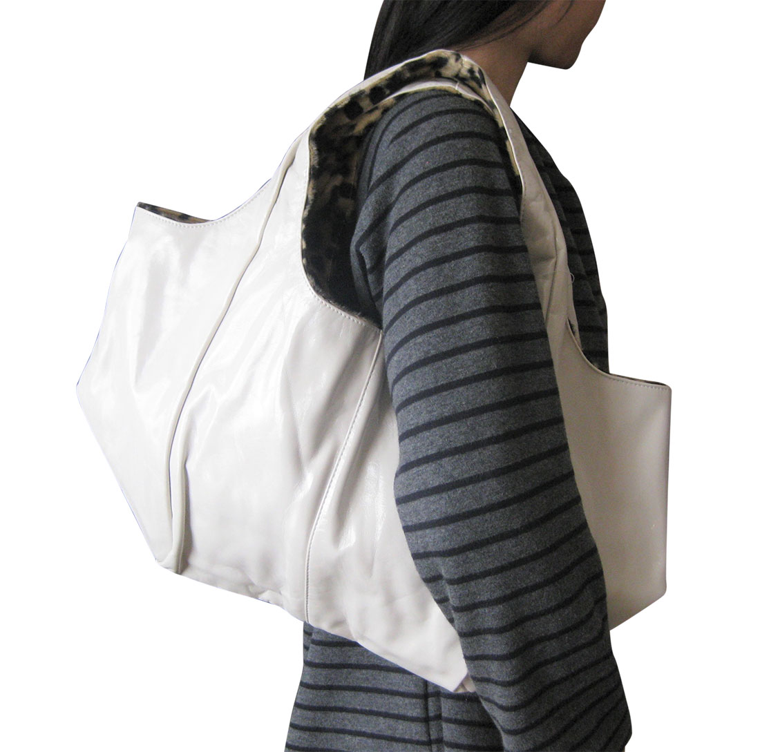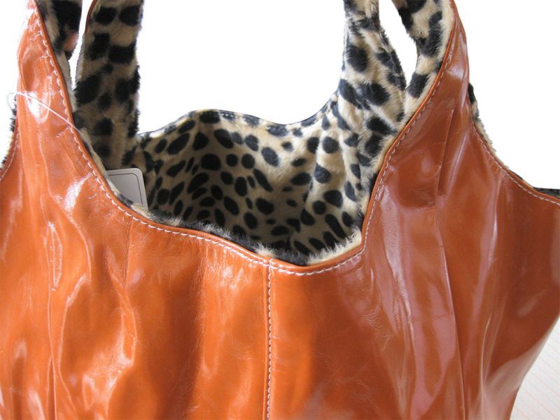 | 大きなマチの大容量バッグ!エナメル×ファーリバーシブルトート | |