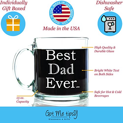 - Title : Gifts For Dad: Best Dad Ever Glass Coffee Mug 13 oz - Unique Novelty Birthday Gift For a Father Who Loves Coffee or Tea - Perfect Valentines Day Present Idea for a Dad