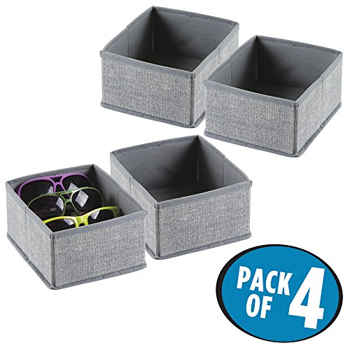 mDesign Fabric Dresser Drawer Storage Organizer for Underwear, Socks, Bras - Pack of 4, Small, Grey