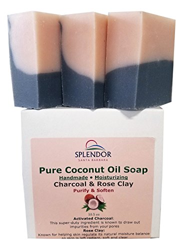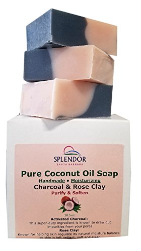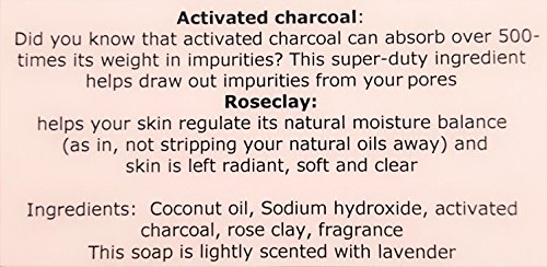 Activated Charcoal & Rose Clay Spa Bar (10.5 oz) - Pure Coconut Oil Soap. Handmade, Vegan, Natural, Moisturizing,