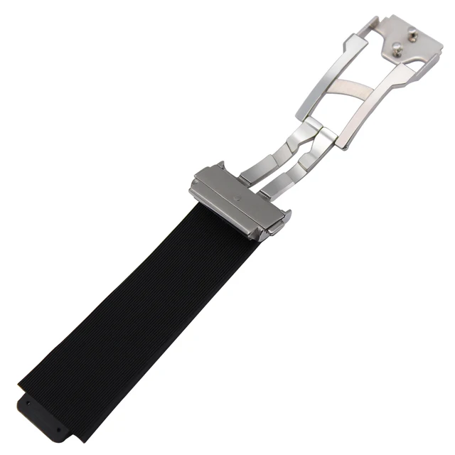 | [해외] 23 미리메터 26 미리메터 28 미리메터 실리콘 고무 손목 15 미리메터 19 미리메터 볼록 스트랩 블로 시계 밴드 스틸 버클 스트랩 손목 팔찌 블랙 |