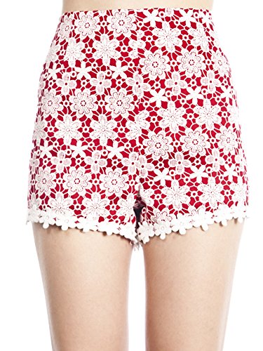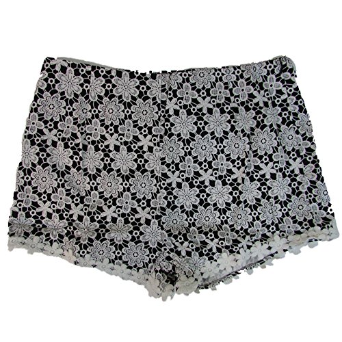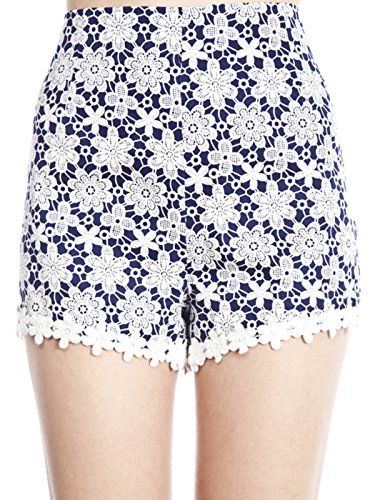 Umgee USA Women's High Waist Daisy Print Shorts With Floral Lace Trim