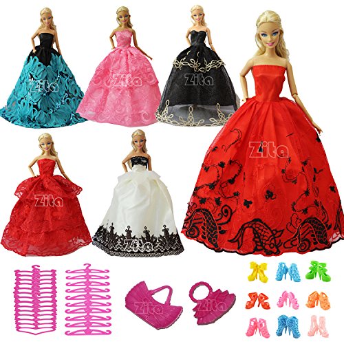 -. Feature : 5 PCS Fashion Dress Gown for Barbie Clothes +5 SHOES, 3 HANGERS, 2 FASHIONBAG / 15 Lot Barbie doll Clothes for Fashion Party Outfit, shoes, hangers, fashionbag / Noble Handmade Gown for Barbie Dress Clothes. When Normal Ship from China by USPS,Get it in 7-14 days. (Please know the delivery time from China is 15-25 days for November & December purchase order, Please wait & select the Fullfill By Amazon service if you care the delivery time. We're not accept complain delivery time when ship from China for during this season. THANKS FOR YOUR ATTENTIONS.) / Quality Handmade Outfit Barbie Clothes/ Gift Outfit for Barbie Doll Dress / NOTICE: that all items are made for and all by ZITA ELEMENT® Doll Closet, they are made to fit the popular Barbie Doll products. We are not affiliated with Mattel, we are not implying in any way that these items are associated with Mattel. We simply just offer great products to complement the Barbie products. Barbie is the trademark of Mattel.
