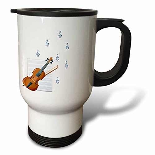3dRose tm_53604_1 Violin Playing Music Notes Musical Art Instruments Travel Mug, 14-Ounce, Stainless Steel