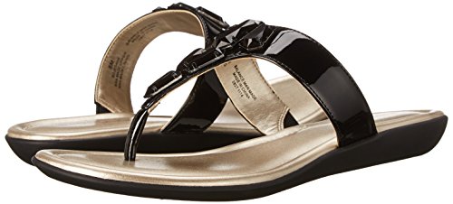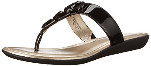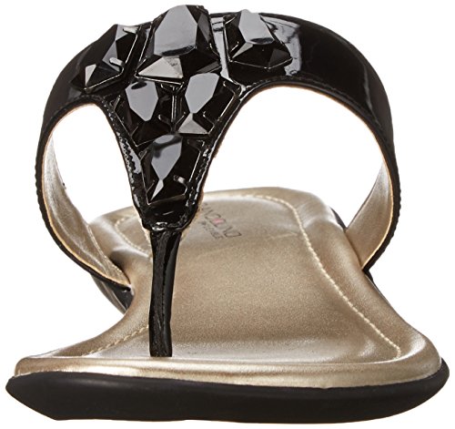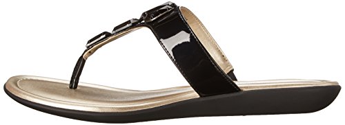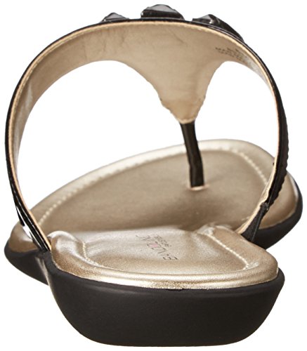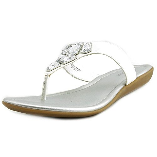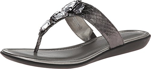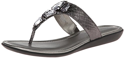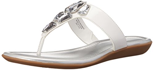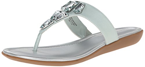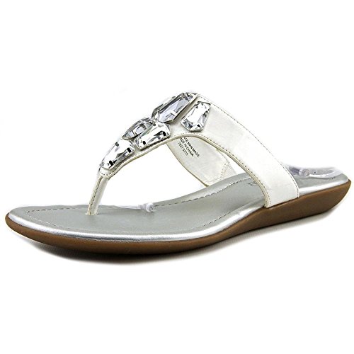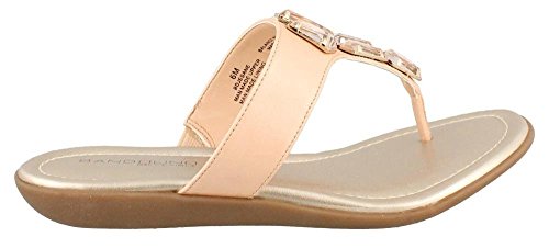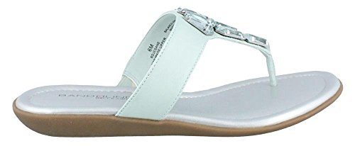 Women's Bandolino, Jesane thong Slide Sandals This clean and casual style features glittering jewels to add some pizazz! Manmade upper with jewel details for added appeal Slide style sandal with elastic goring panel for an easy on and off Smooth manmade lining Cushioned footbed for added comfort 3/4 inch heel Rubber outsole. Heel Height of 0.75 inches