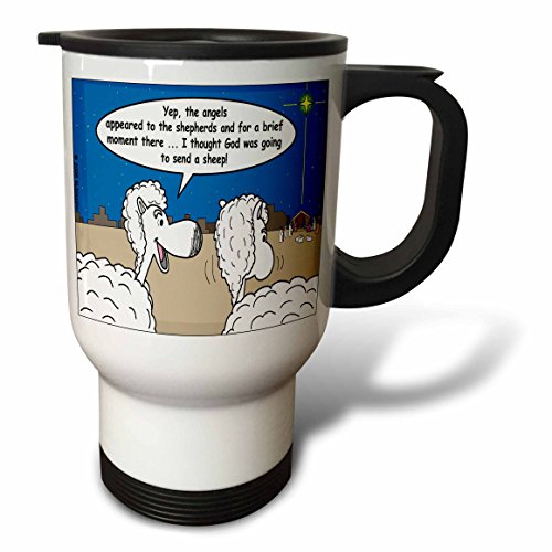 3dRose Sheep Discuss Christmas Travel Mug, 14 oz, Stainless Steel, White