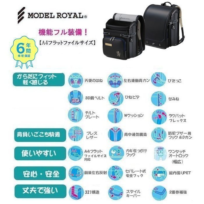【천사의 날개】란도셀 모델 로얄 베이직 MR16B《2017년 모델》사내 아이【A4플랫 파일 대응】세이반(6년 보증)MODELROYAL 신