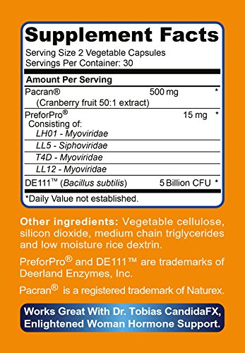 -. Binding : Health and Beauty -. Brand : Dr. Tobias -. EAN : 0646437150408 -. Feature : 5 Billion CFU Reinforced by our Patented Probiotic Booster PreForPro® - a highly effective Prebiotic that only feeds the good bacteria and works against the bad bacteria. / With Pacran® Organic Cranberry Extract - Clinically studied and substantiated to make a "Supports Urinary Health" claim. Pacran® is the first cranberry ingredient in the world that can freely market a government sanctioned health claim. We use the dosage that was used in the study. / SPORE-ENHANCED FOR CLINICALLY PROVEN BENEFITS (DE111®) - DE111® supports the normal proliferation of beneficial bacteria and the normal immune reaction of intestinal cells. NO Refrigeration Needed - Long Shelf Life. Spore forming strains are the only ones that remain viable under a wide range of temperature / PROVEN STOMACH ACID PROTECTION - With Advanced Patented Capsules DRCaps® for Proven Targeted Release. Delivers Deeply Into the Intestines. Most others don't. DRCaps® do not have after-taste, they are vegetarian with Kosher and vegetarian certifications. / QUALITY MADE IN THE USA: 1 Month Supply of 60 delayed release capsules, made in the USA according to cGMP stardards. Use with pride and confidence. -. IsAdultProduct : 0 -. Label : Dr. Tobias -. Manufacturer : Dr. Tobias -. MPN : 15-22946-NI-0626-01 -. PackageQuantity : 1 -. PartNumber : 15-22946-NI-0626-01 -. ProductGroup : Health and Beauty -. ProductTypeName : HEALTH_PERSONAL_CARE -. Publisher : Dr. Tobias -. Studio : Dr. Tobias -. Title : Optimum Probiotics for Women: UT Support with Organic Cranberry & Patented Probiotic Booster (60) -. UPC : 646437150408