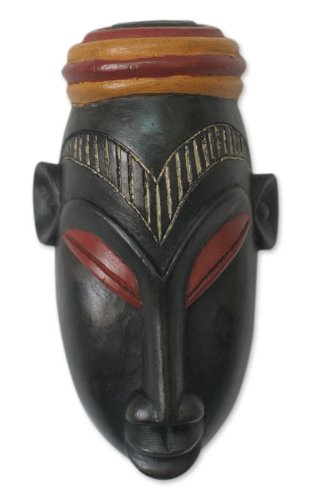 NOVICA Decorative Sese Wood Mask, Black, 'Baule Wedding'