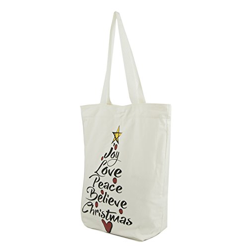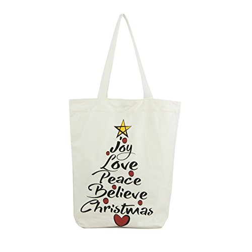 Holiday Joy Season Handbag Tote Features a Zip Compartment Sturdy Canvas Adorable, White
