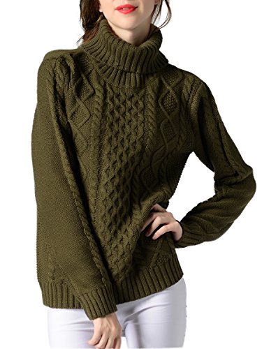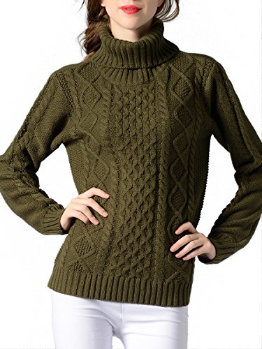 -. Title : (リッチココ)richcoco レディース ニット ケーブル編み セーター トップス タートルネック 無地 長袖 リブニット プルオーバー 春秋冬 グリーン M