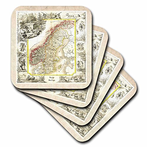 3dRose cst_56945_2 Old Norway N Sweden 1847 Map Soft Coasters, Set of 8