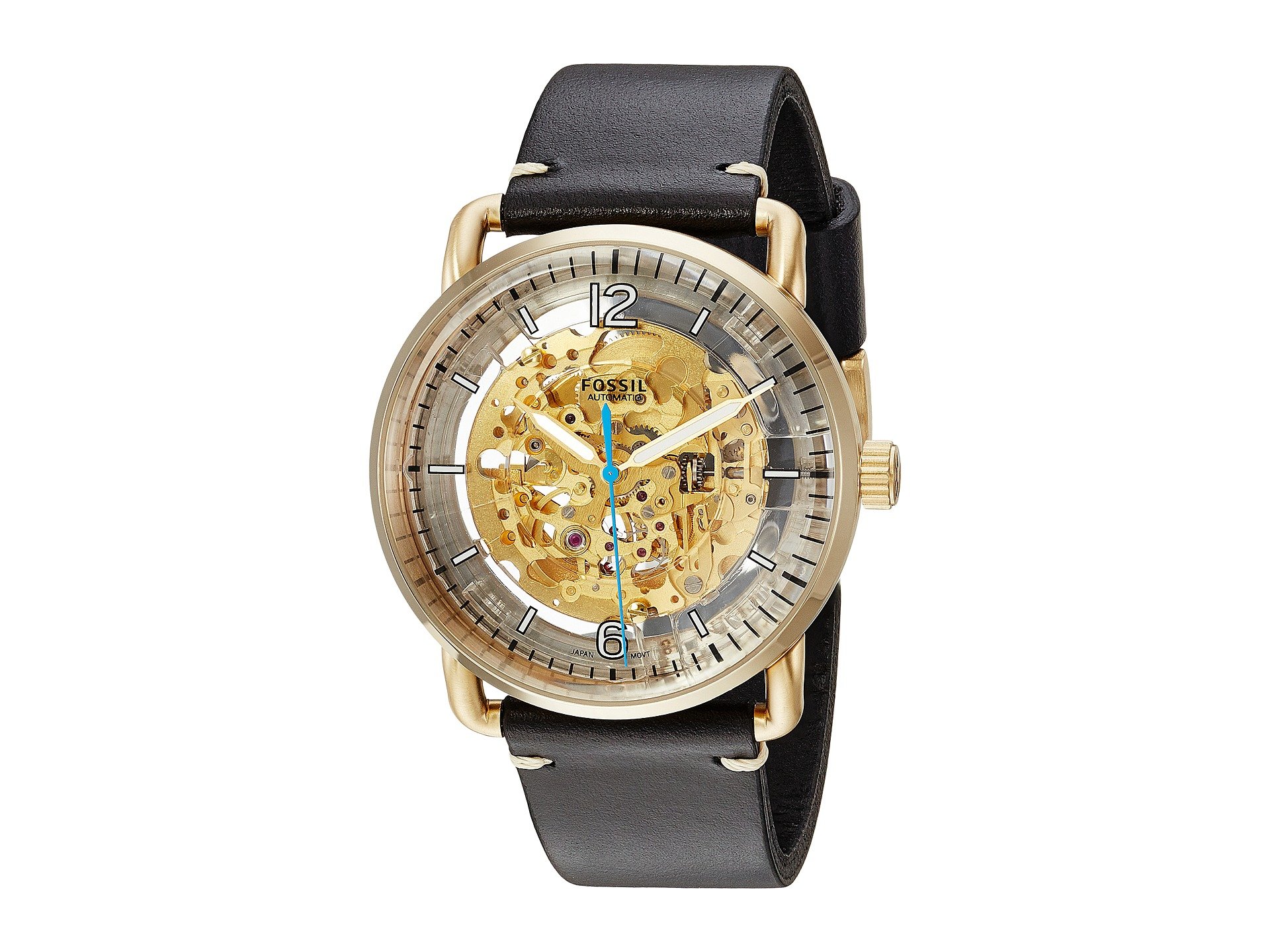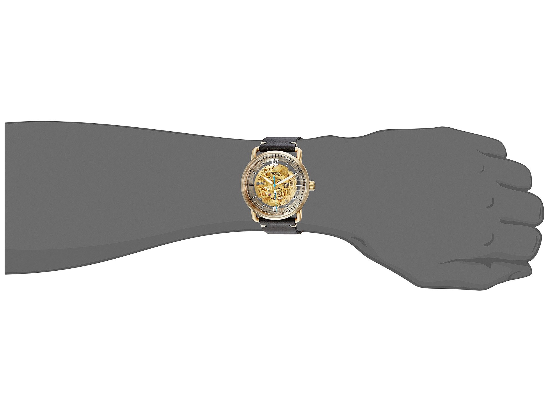 | Product Information SKU: #9031108Race the clock with the Fossil? Commuter Automat ME3143.Stainless steel case.Leather strap with adjustable buckle closure.Round face.Three-hand analog display with quartz movement.Transparent skeleton dial features silver-tone hands and hour markers, minute track, and Fossil detailing.Water resistant to 5 ATM.Imported.This product may have a manufacturer's warranty. Please visit the manufacturer's website or contact us at warranty@support.zappos.com for full manufacturer warranty details.Measurements: Case Height: 42 mm Case Width: 42 mm Case Depth: 13 mm Band Width: 21 mm Band Circumference/Length: 9 1?4 in Weight: 2.2 oz |