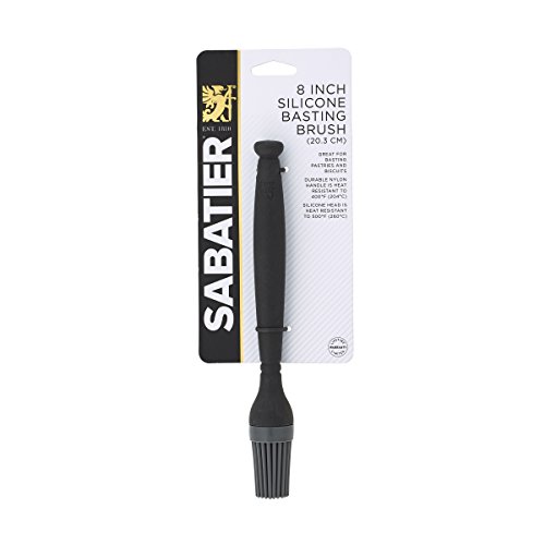 Studio : Sabatier Publisher : Sabatier Binding : Kitchen Product Description This Sabatier Black and gray small nylon basting brush is perfect for basting meats, glazing ham, or for use as a pastry brush on biscuits, breads, and pies. The 8-inch durable nylon handle is heat-resistant to 400 degrees F, and the silicone head is heat-resistant to 500 degrees F. Safe to use on all cookware, including nonstick. Dishwasher safe. 0