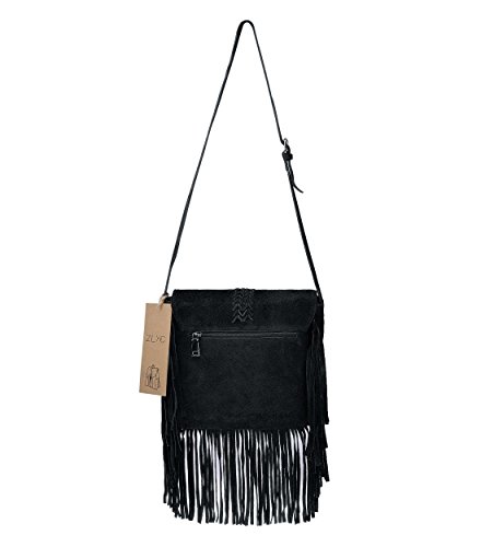 -. Title : ZLYC Women Bohemian Nubuck Leather Fringe Bag Pouch Tribal Tassel Cross Body Shoulder Bag