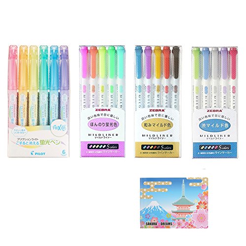 Zebra Double-Sided Highlighter MILDLINER SPECIAL SET (D-set) 3 Packs 15 Colours (WKT7-5C , WKT7-5C-RC , WKT7-5C-NC) , Pilot Frixion Light 6 Soft Color Erasable Pen Set (SFL-60SL-6CS) , Sticky notes