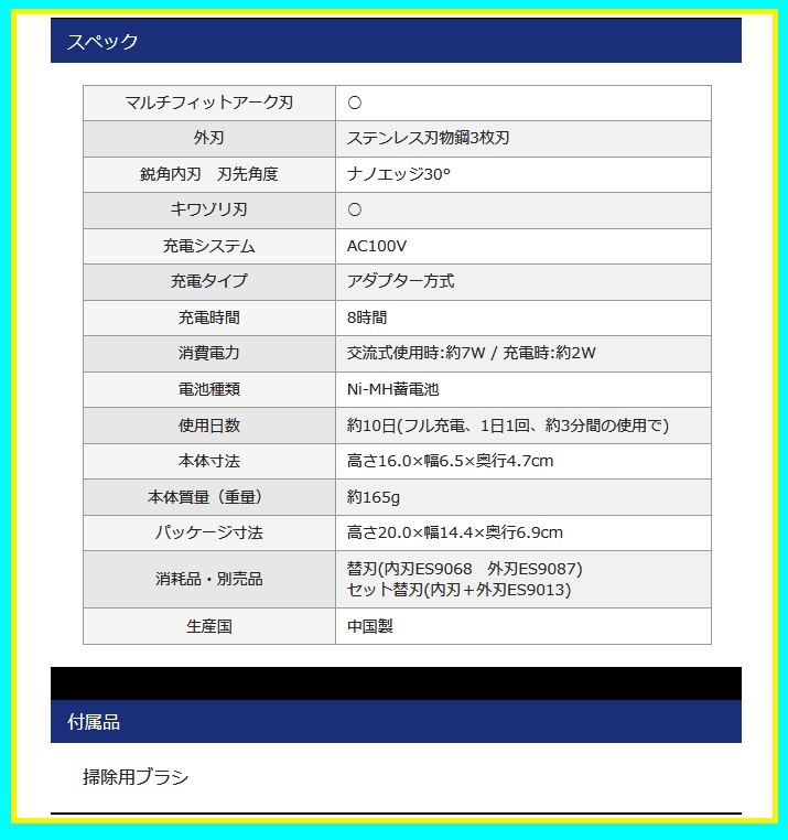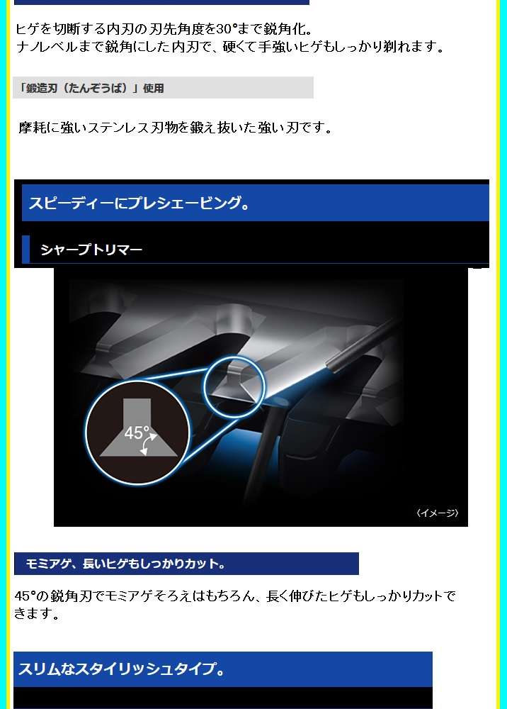 ●硬いヒゲもスパッと剃る「30°鋭角ナノエッジ内刃」