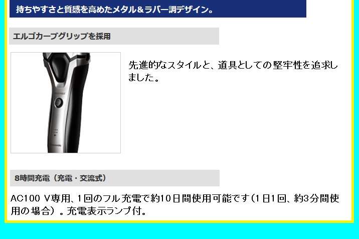 ●使用日数:約10日(フル充電、1日1回、約3分間の使用で)