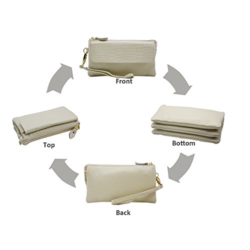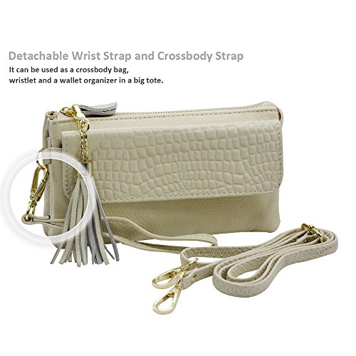 Belfen Leather Wristlet Wallet Clutch Phone Wristlet Women Smartphone Wallet Tassels Wristlet with Exquisite Tassels/Card slots/Shoulder strap/Wrist Strap -for smartphone Up to 6.1 x 3*0.3 Inch-Beige