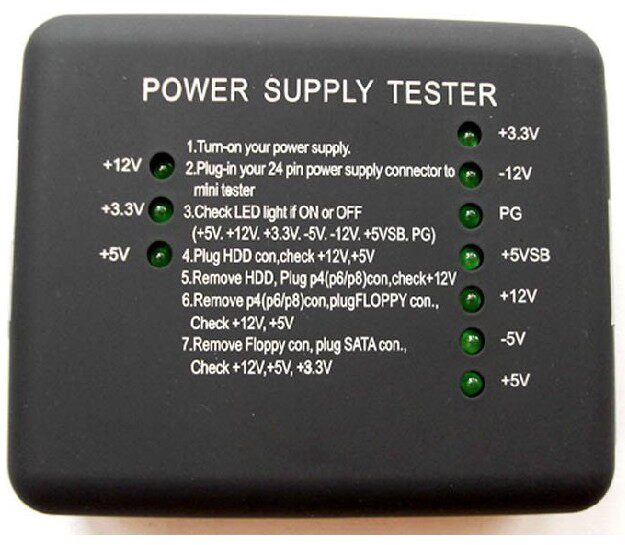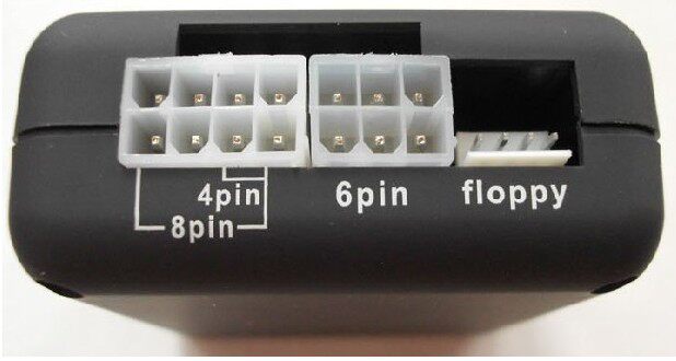此新款ATX电源测试仪可以测试:4PIN/6PIN/8PIN, HDD电源接口/SATA电源接口, FLOPPY
