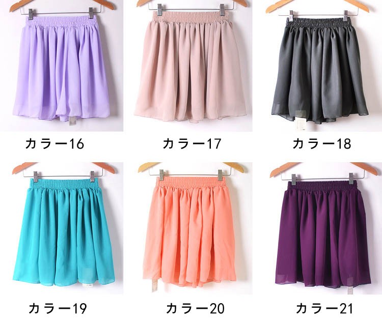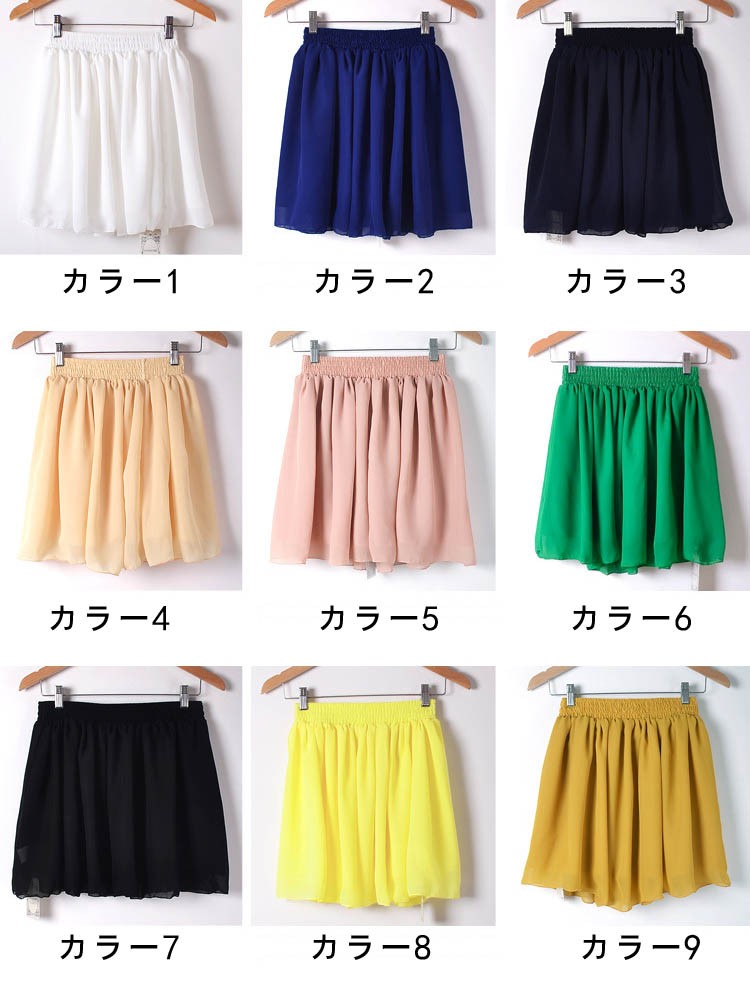 【入荷後営業日2,3日以内出荷予定 通関待ちや不良により出荷遅くなる場合はメールにてご連絡いたします。メール受信設定によっては正常に受信されない場合はございますので、 弊社からのメールを予め受信頂くようご設定くださいませ。】 ボトムス スカート ウエストゴム入り ミニ丈スカート フレアスカート フェミニン 大人可愛い レディス レディース 春 新作ミニ丈シフォンスカート◆サイズ:着丈42ウエスト60-100裾210◆素材:ポリエステル