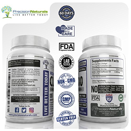 Precision Naturals offers you a high quality CLA product that works fast and convenient to take. 50% Stronger Formula than CLA 1000mg. Precision Naturals guarantees high potency in all our vitamins and supplements. Helps control appetite. It comes from a NON-GMO source, which is very important when you are working to maintain cellular integrity.