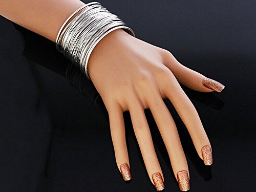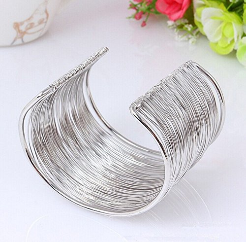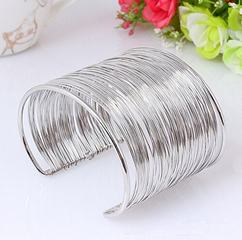 Coolrunner Wire Metal Coil Thin Cuff Bracelet (Silver)