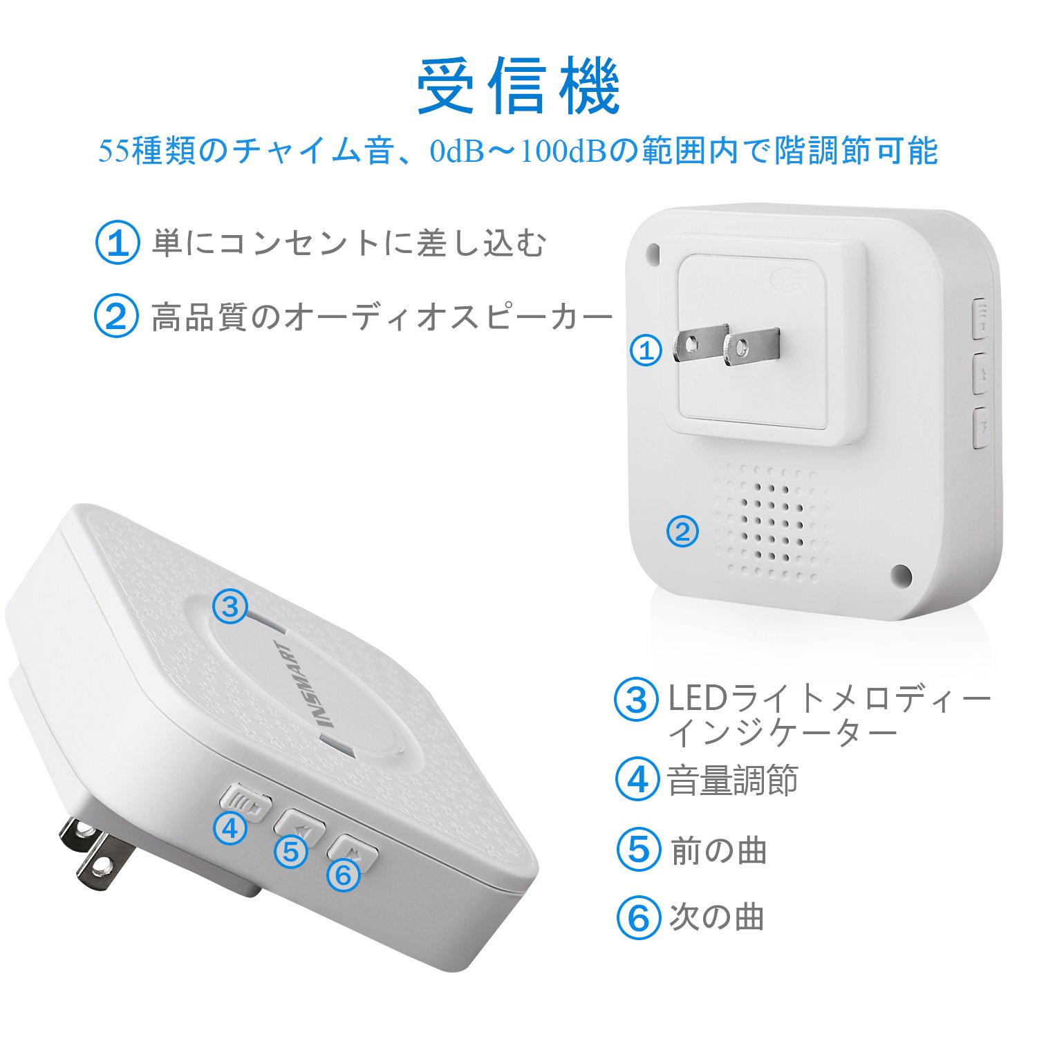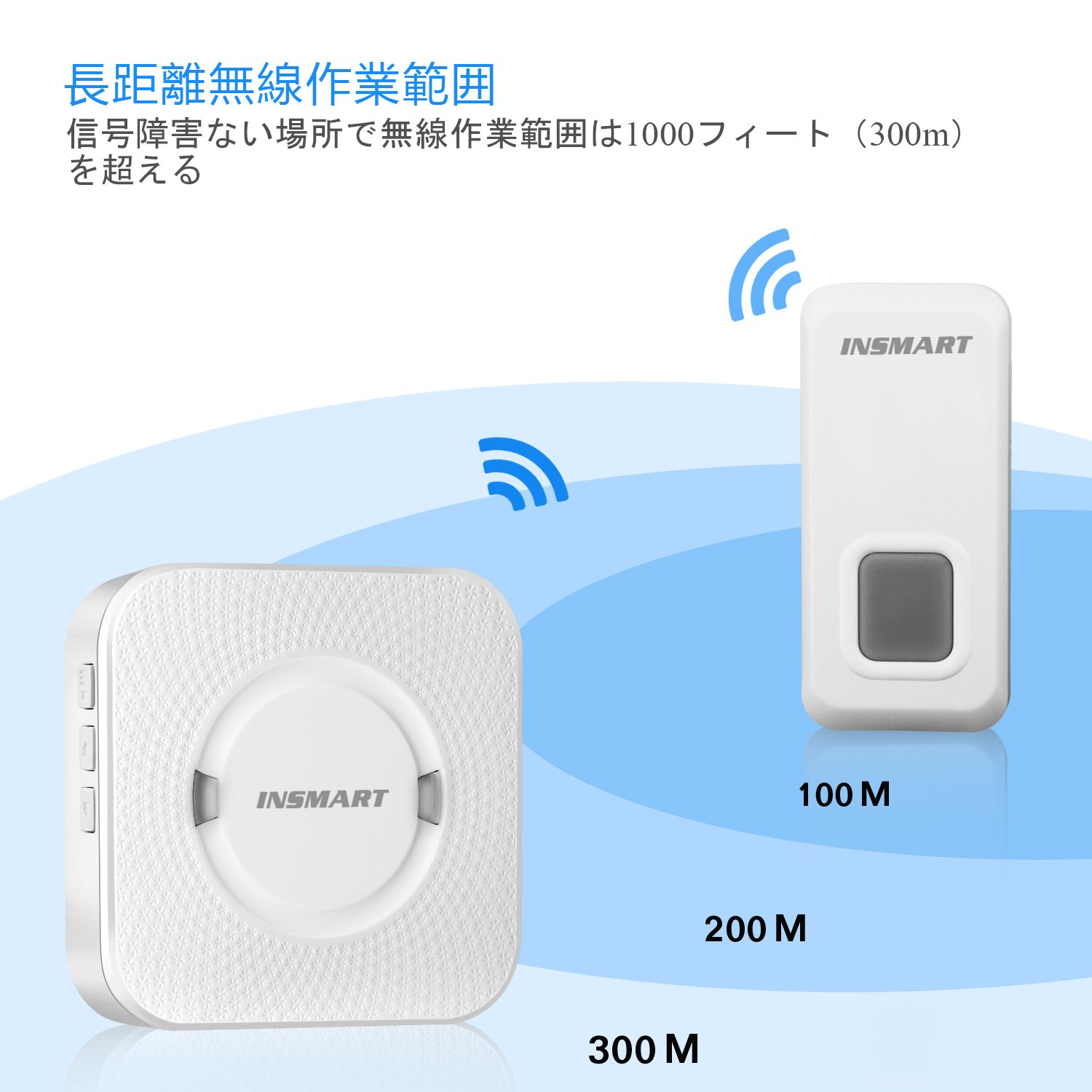 As INSMART wireless chime was adopted as a high quality, high sensitivity receiver, the distance of radio waves is outdoor prospect, up to 300 M in vacant lot.