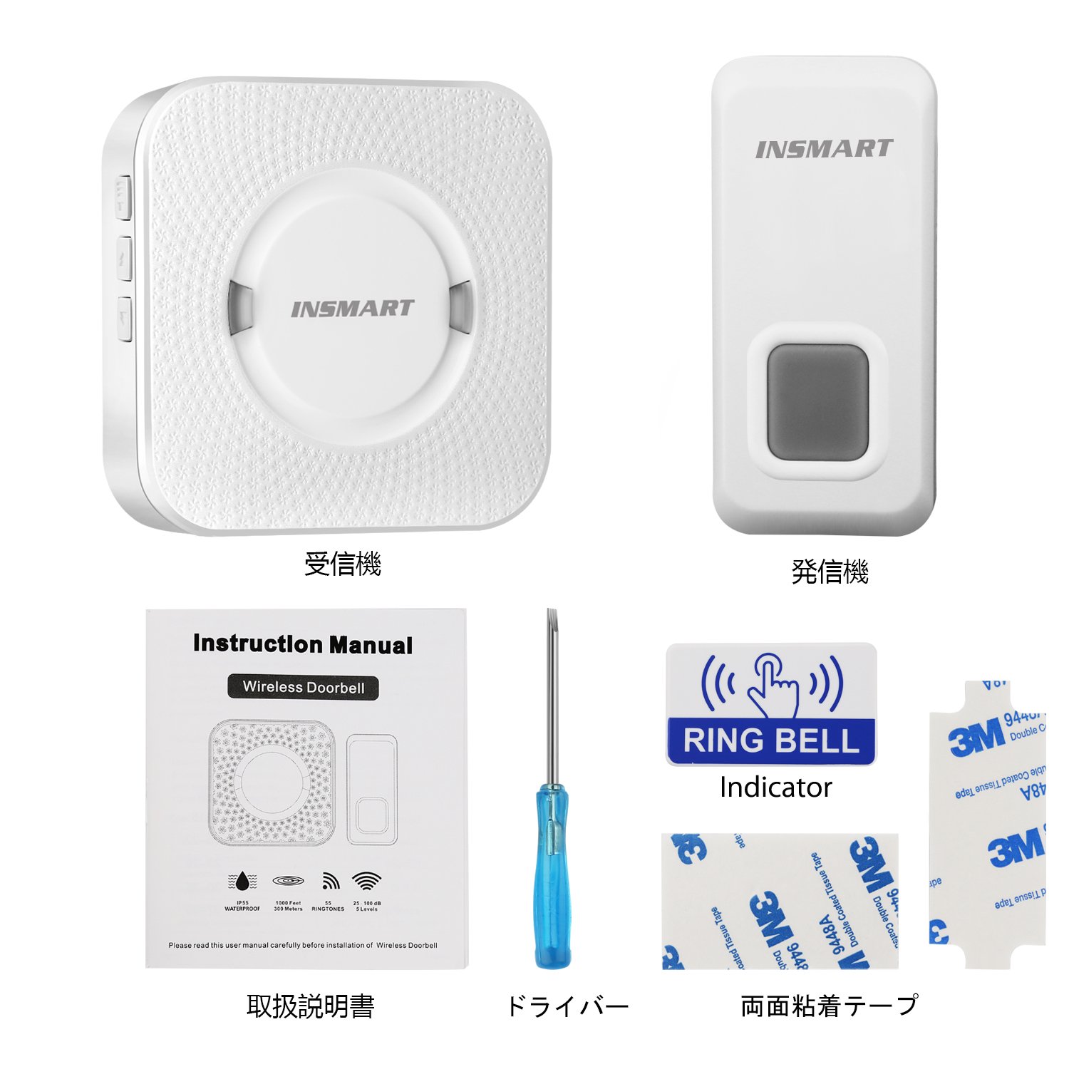 2 x 3 M adhesive double-sided tape (one for transmitter and one for chime sticker)