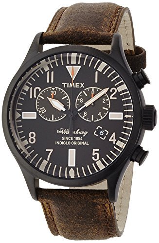 -. Title : TIMEX Waterbury Chronograph SS-made Black Case Black Dial Brown Strap TW2P64800