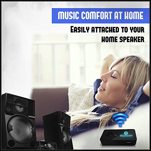 MUSIC COMFORT AT HOME & EASY CHARGING PROCESS : Do you feel like staying in tonight? Enjoy a cup of coffee or a glass of wine? What's missing? Music, of course! Our Bluetooth audio receiver can be attached to your home speakers via a 3.5 audio cable. Also, please stop worrying about charging this Bluetooth device. A red indicator will flash twice continuously as soon as the power is low! Use the USB charge port and when the red light goes out, your charging is complete!