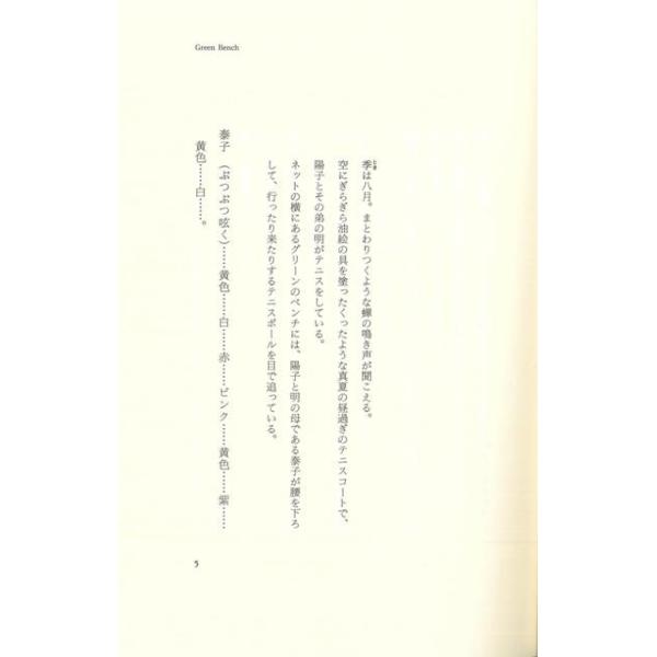 【商品基本情報】 商品名称:グリーンベンチ 著者/出版社:柳 美里/柳 美里 初版発行日:1994/03/25 サイズ:B6判 ページ数:166 ISBN/JAN:4309008917/4528189452275