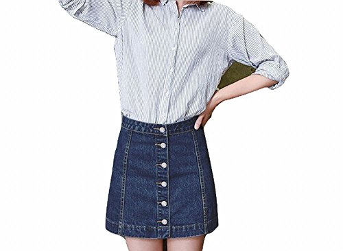 -. Title : インナー付き デニム ミニスカート キュロット パンツ ショートスカート 大人コーデ フロントボタン (L, ブルー)