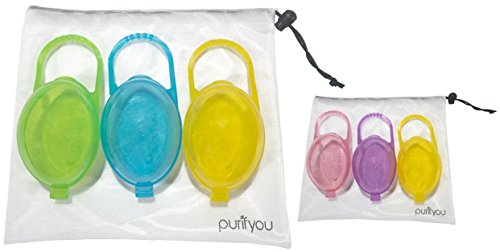 purifyou PurePouch BPA-Free Nipple Shield Case & Pacifier Case, Set of 3, With Free Mesh Sack