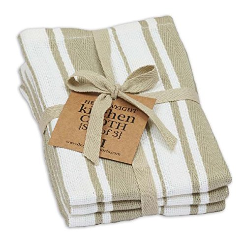 DII Design Imports Gourmet Stripe Herringbone Dishcloth Set of 3 (Mushroom)