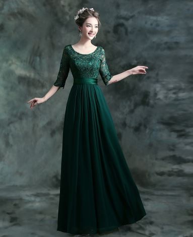 繊細なレース模様が優雅なロングドレスです。