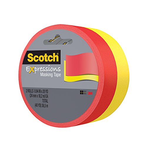 Scotch Expressions Masking Tape, 0.94 " x 20 yd, Red, Yellow, 2 Rolls (3437-2RY)