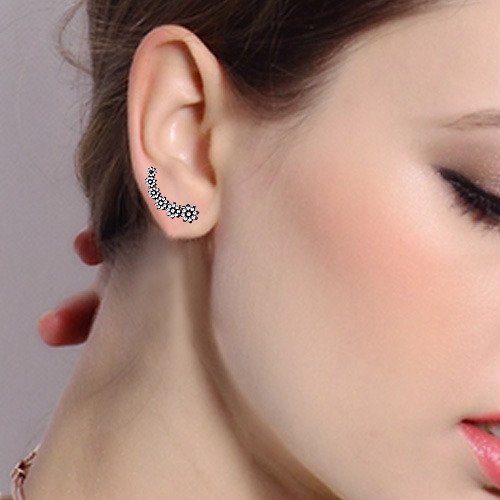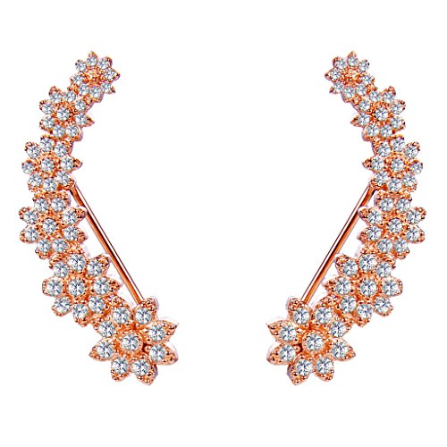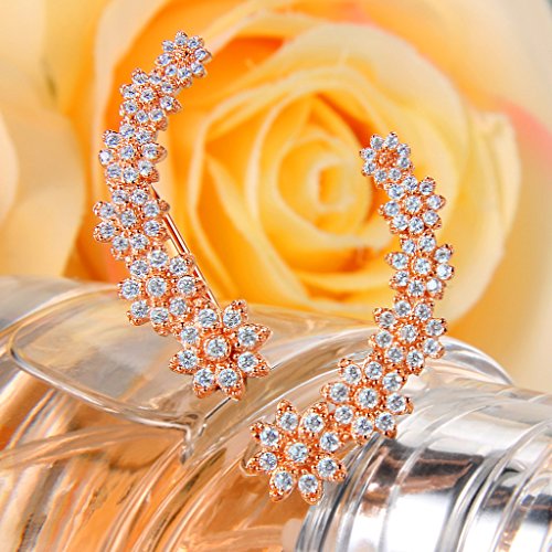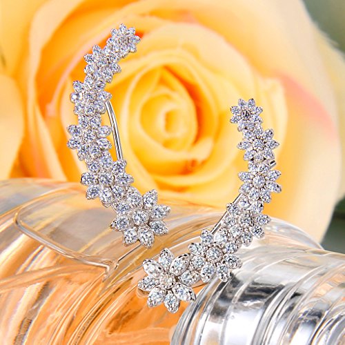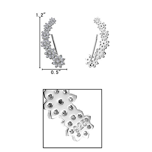 -. Title : EleQueen 925 Sterling Silver CZ Flower Ear Vine Crawlers Sweep Wrap Cuff Hook Earrings 1 Pair