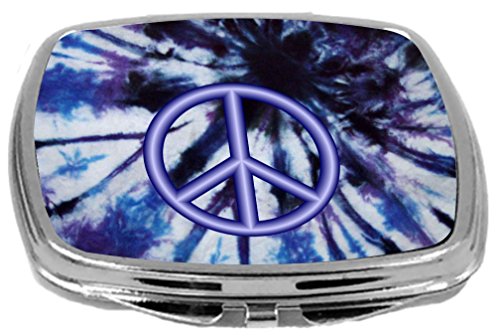 Rikki Knight Compact Mirror, Peace Logo On Blue Tie Die