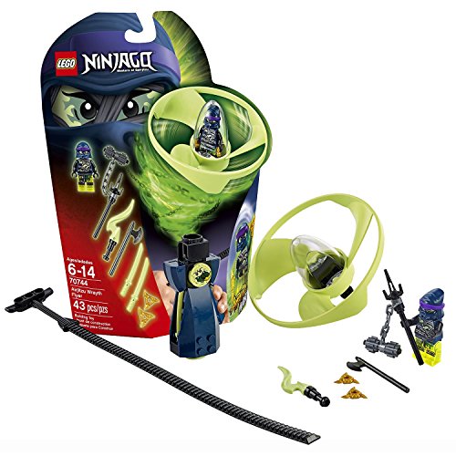 -. Feature : Includes: AIRJITZU WRAYTH FLYER with Ghost Warrior Wrayth Minifigure, Weapons, Vortex Rotor, Capsule & Rip Cord (Total Pieces: 43) / Wrayth weapon include axe, Phantom Flame, Spine Chiller, 2 golden shurikens and 2 ghost swords / Pull the rip cord to send the ghost warrior spinning through the air! / Produced in year 2015 / For age 6 - 14