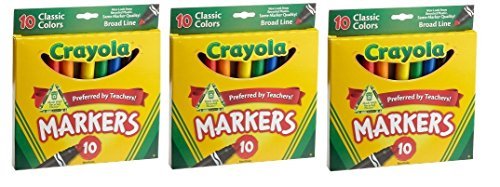 Studio : Crayola Publisher : Crayola Binding : Toy Product Description CRAYOLA-Broad Line Markers available in brown, purple, red, orange, yellow, green, blue, black, grey and pink. These 10 classic colors in a broad line marker are perfect for drawing thick lines and coloring large areas. Non-toxic. Conforms to ASTM D 4236. Made in USA. 0