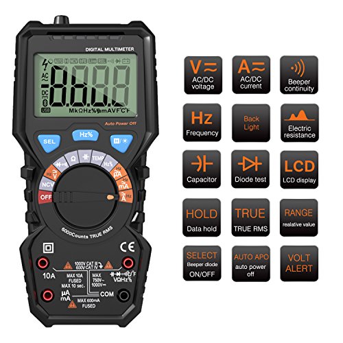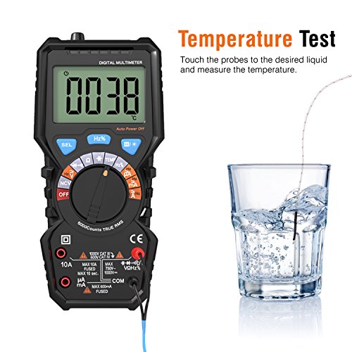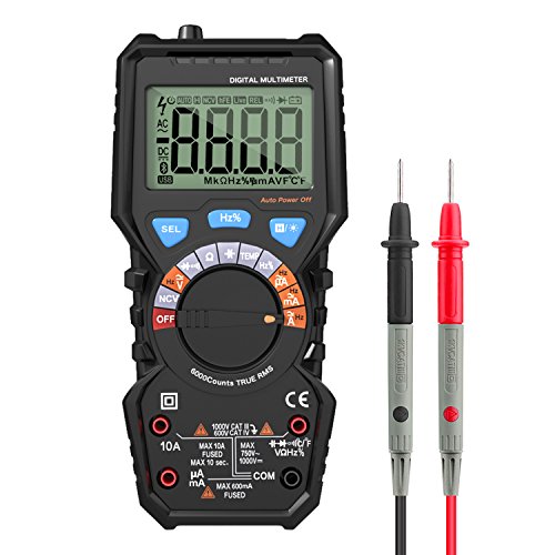 Auto-Ranging Digital Multimeter, Housolution True RMS 6000 Counts Digital Multi Tester Volt Amp Ohm Diode and Continuity Test, Non Contact Voltage Detection, Backlight LCD Display - BLACK